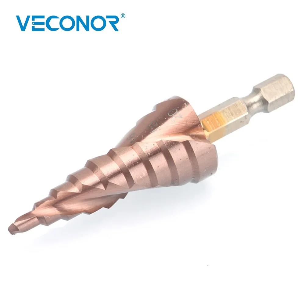 Veconor 4-20mm impact step drill bit with double spiral flute design HSS Cobalt multiple hole cutter tool set 1/4" hex shank